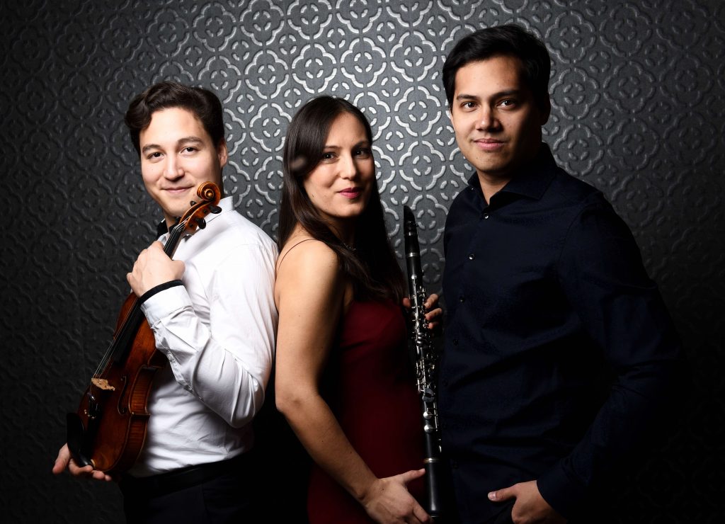 “Trio Schmuck“ – ein dynamisches Ensemble bestehend aus Sayaka Schmuck (Klarinette), Prof. Barbara Buntrock (Violine und Viola) und dem OPUS-KLASSIK-Preisträger Benyamin Nuss (Klavier) – präsentiert Kammermusik auf höchstem Niveau. Die drei preisgekrönten Musiker vereinen herausragende instrumentale Meisterschaft, langjährige Bühnenerfahrung und eine tiefe Leidenschaft für die Kammermusik. Veranstalter und Publikum sind gleichermaßen begeistert von den charismatischen Auftritten des Trios und der kreativen Vielfalt seiner Programme. Das Repertoire reicht von Originalkompositionen großer Meister wie Mozart, Schumann und Bruch bis zu fesselnden Arrangements von Piazzollas Tangos. Ob rein konzertant oder mit lebendigen, charmanten Einführungen – das Trio gestaltet maßgeschneiderte Konzerterlebnisse, die das Publikum in ihren Bann ziehen. Mit technischer Brillanz, Charisma und einer kreativen Programmauswahl wird jeder Auftritt zu einem unvergesslichen Highlight.